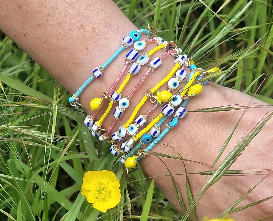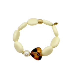 Des bijoux colorés toujours très chics, très féminins avec des matières nobles, comme la nacre ou les pierres semi-précieuses.