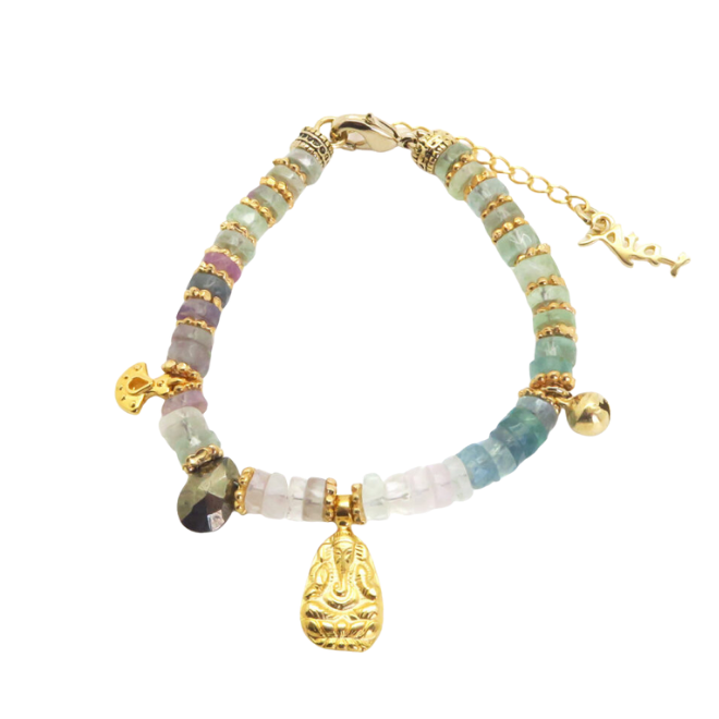 Coloris: pierres semi-précieuses en fluorite et goutte en pyrite.