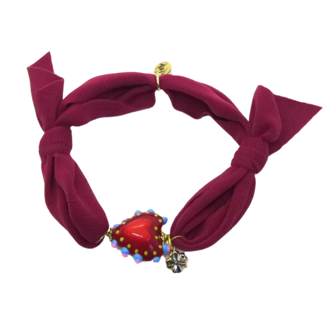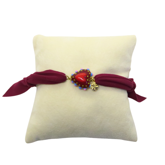 Bracelet Candy Bar avec cœur en verre bordeaux et rose