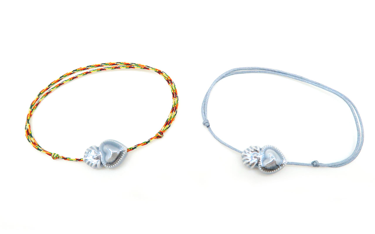 Bracelet en cordon ajustable avec un coeur en céramique.