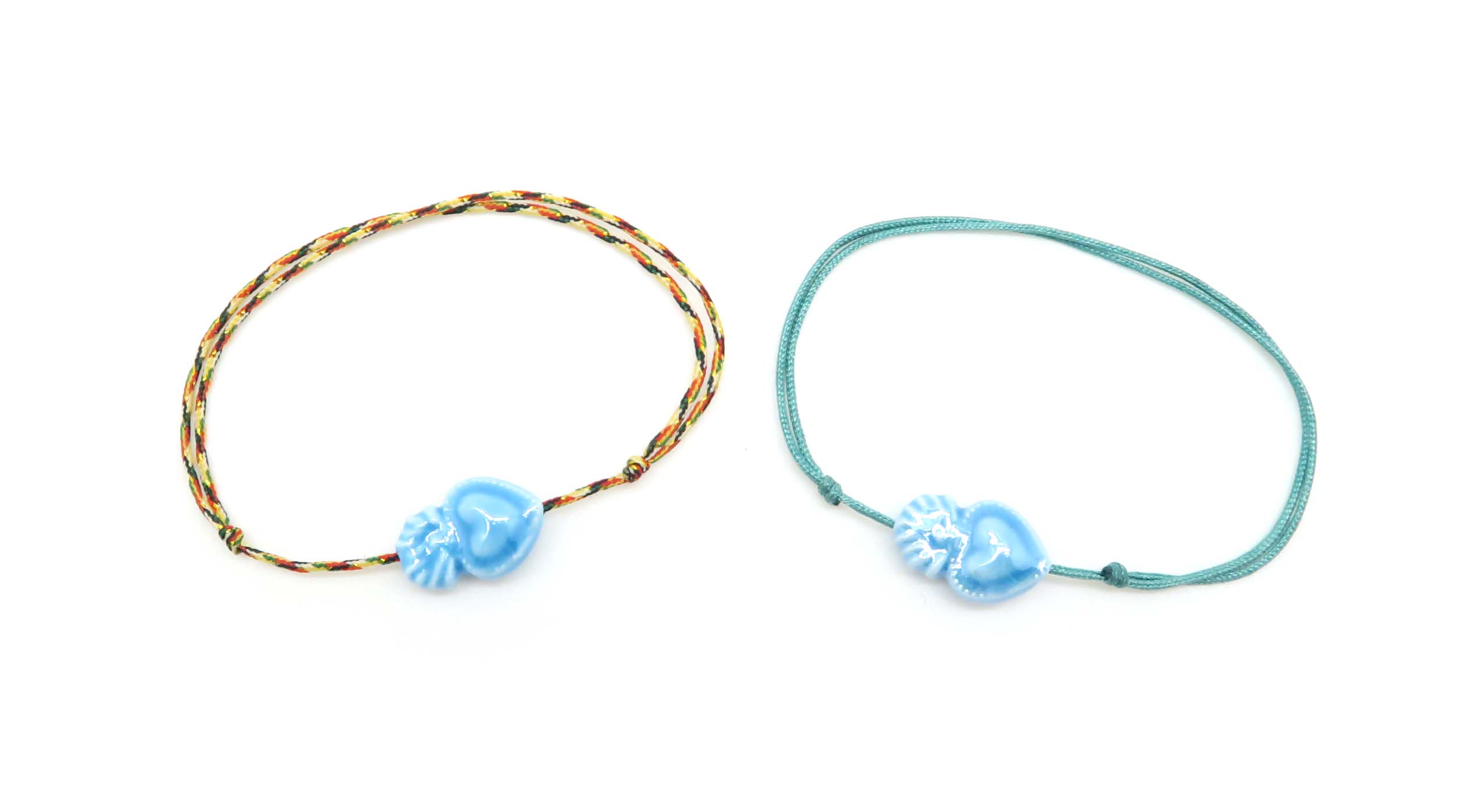 Bracelet en cordon ajustable avec un coeur en céramique.