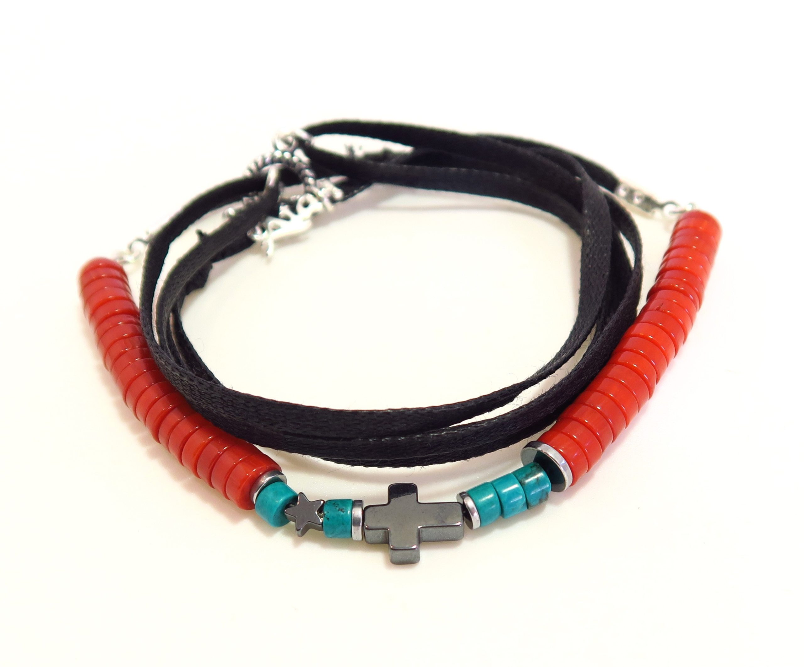 Bracelet cordon multitours pour homme avec pierres semi-précieuses.