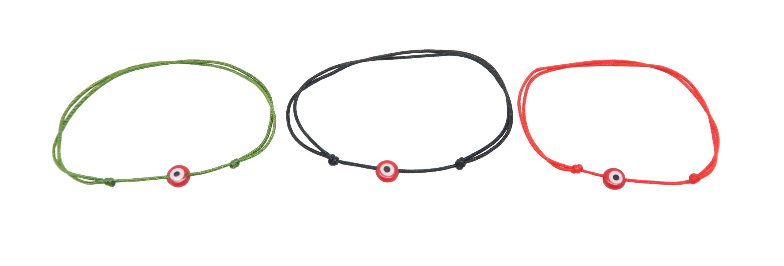 Bracelet cordon ajustable avec oeil porte bonheur en verre.