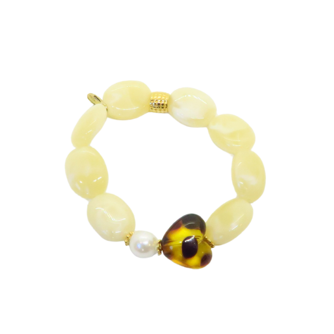 Bracelet Gabrielle perles ivoire et cœur léopard