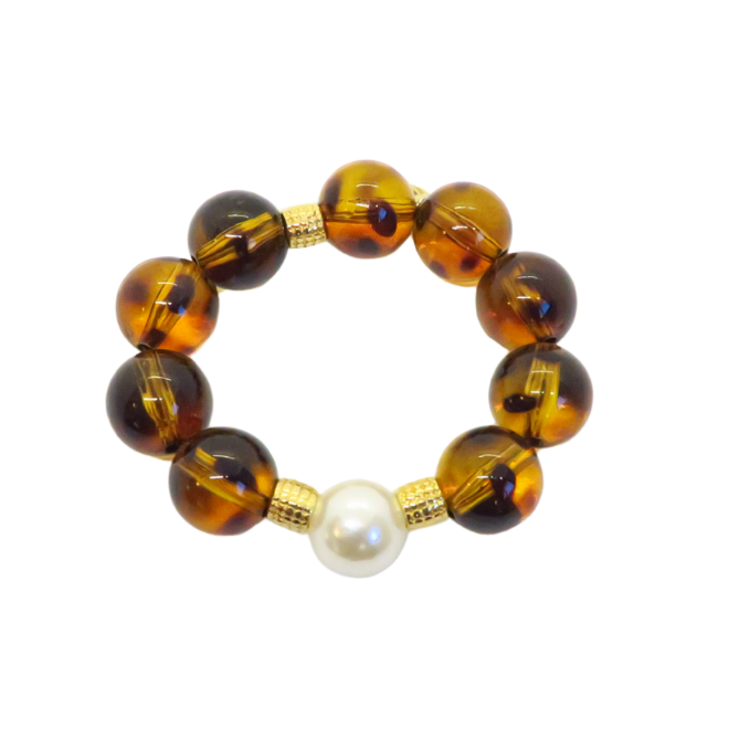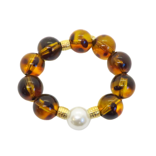 Bracelet élastique en perles léopard résine et perles de culture fantaisie.