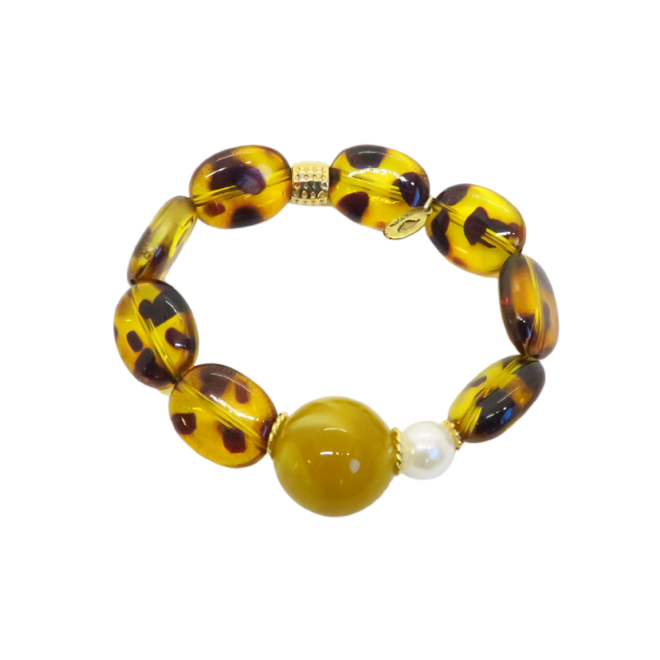 Bracelet Gabrielle perles léopard et perle miel