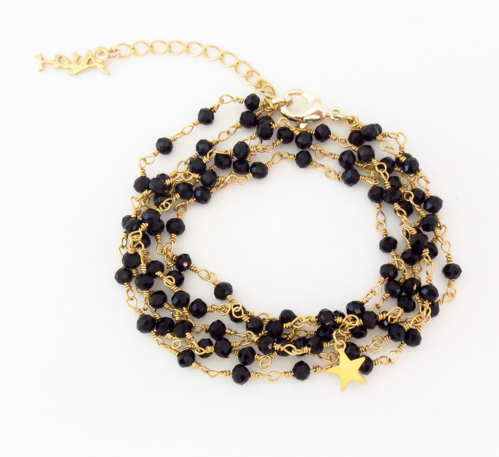 Bracelet deux tours avec chainette en perles de cristal et petite étoile.