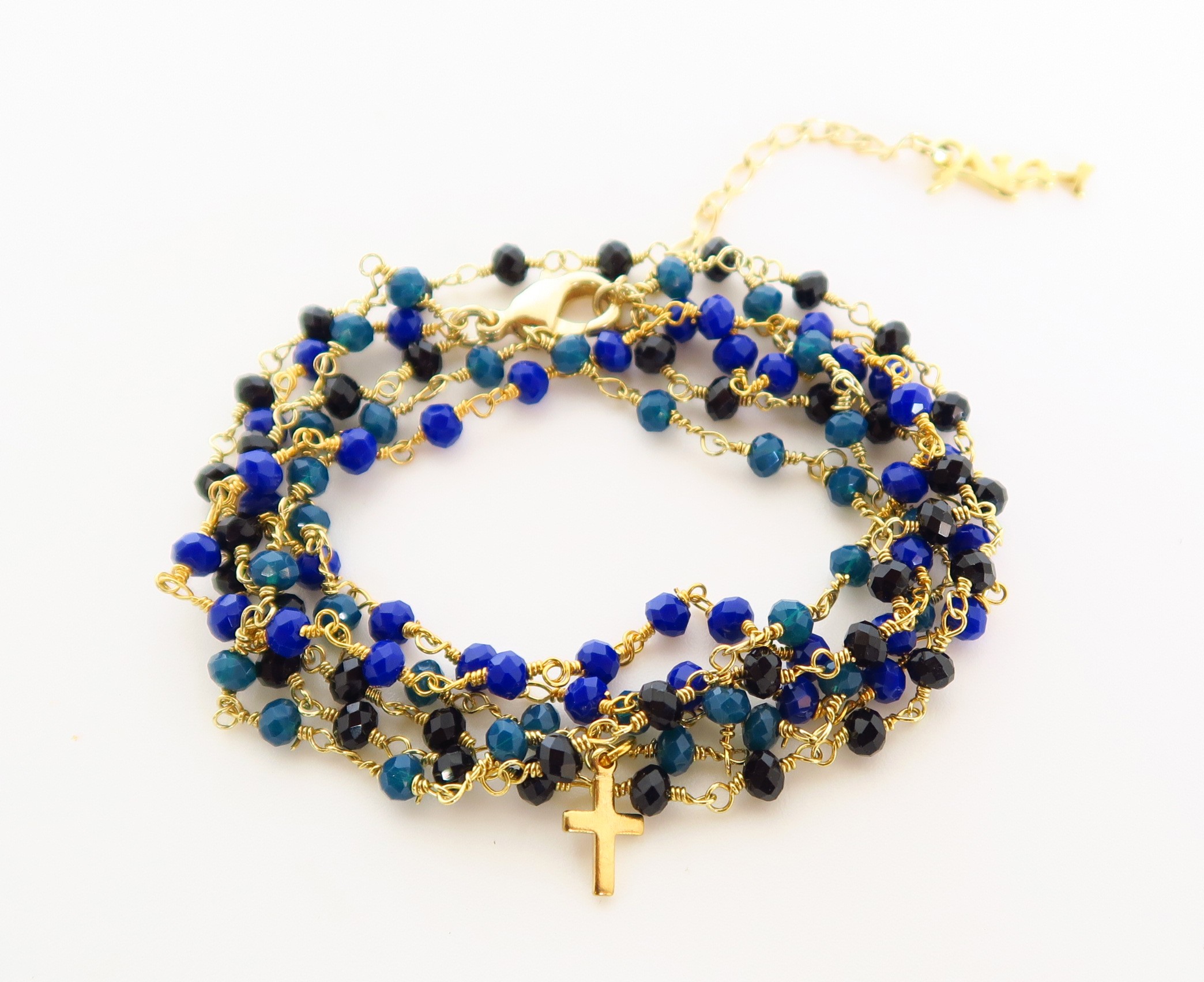 Bracelet deux tours avec chainette en perles de cristal et petite étoile.