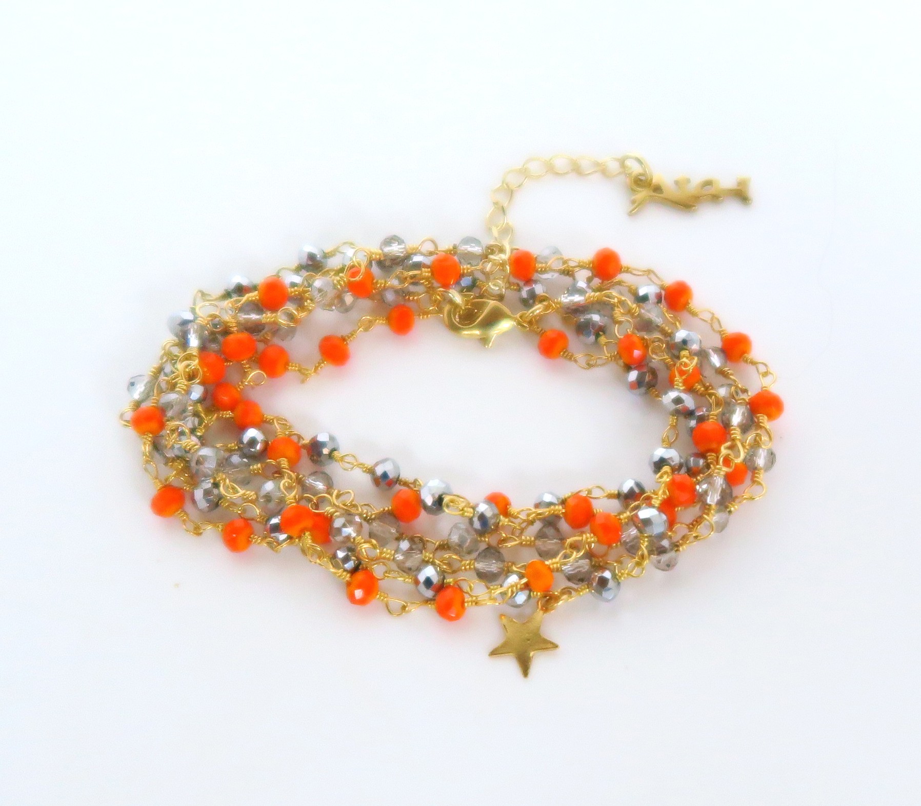 Bracelet deux tours avec chainette en perles de cristal et petite étoile.