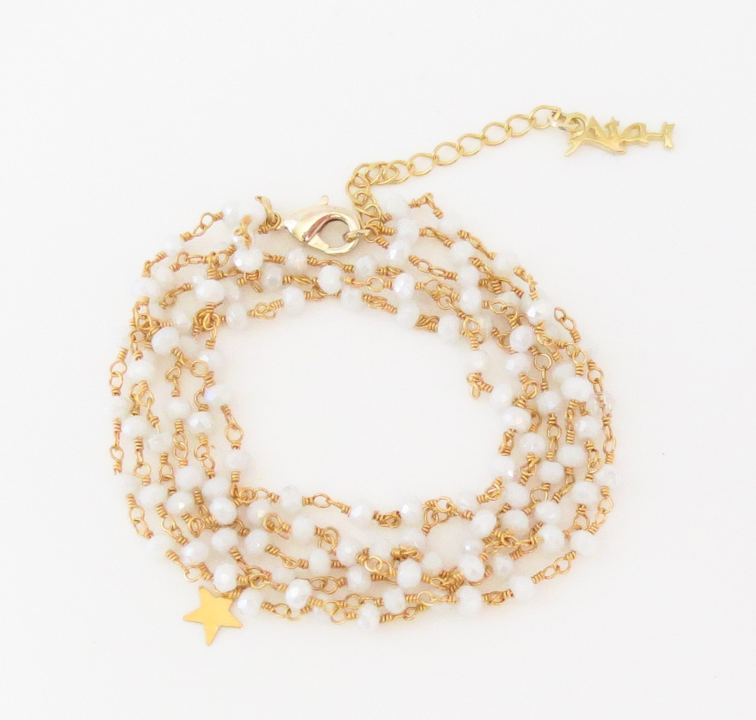 Bracelet deux tours avec chainette en perles de cristal et petite étoile.