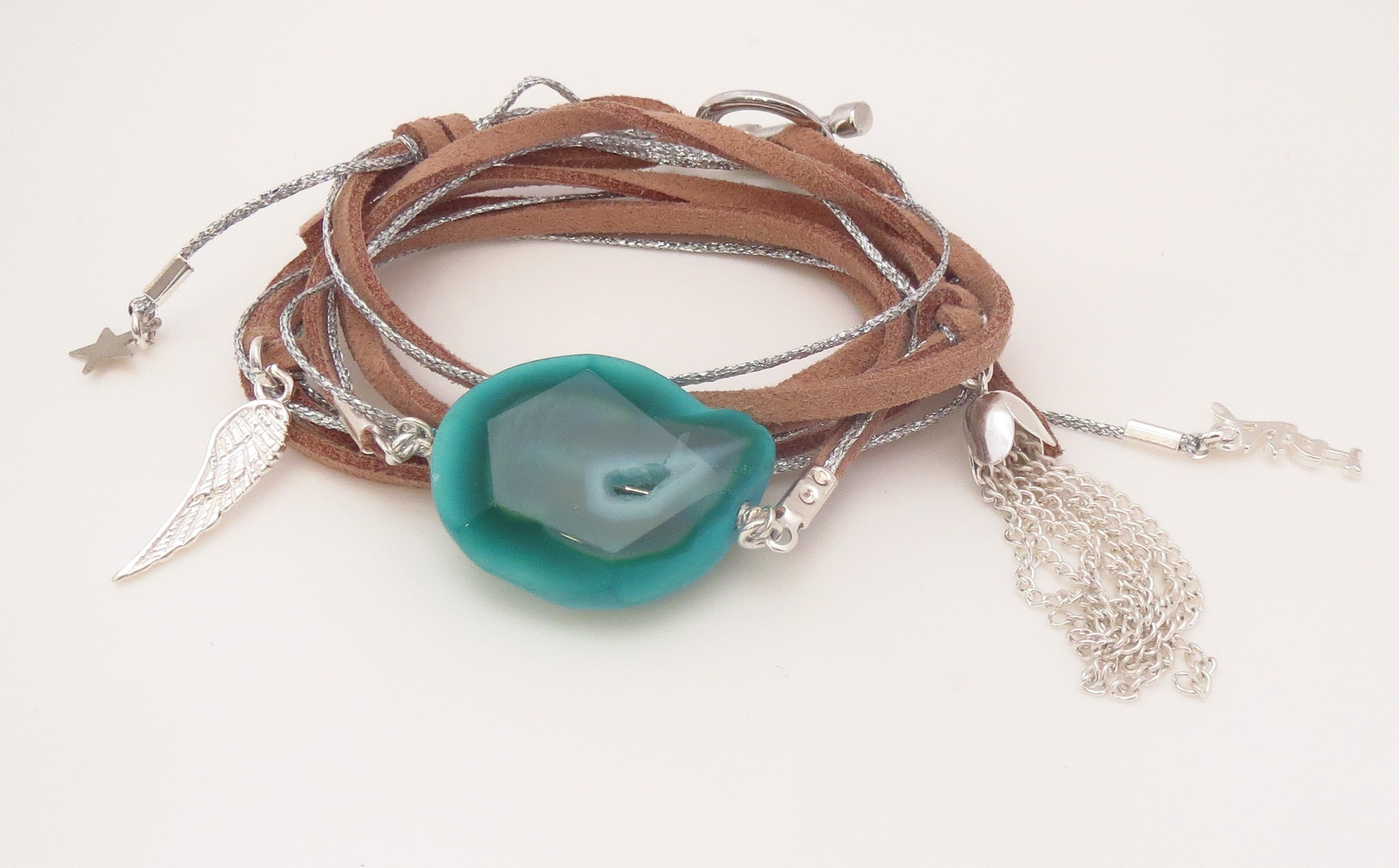 Bracelet en lurex et nubuck avec pierre semi-précieuse.