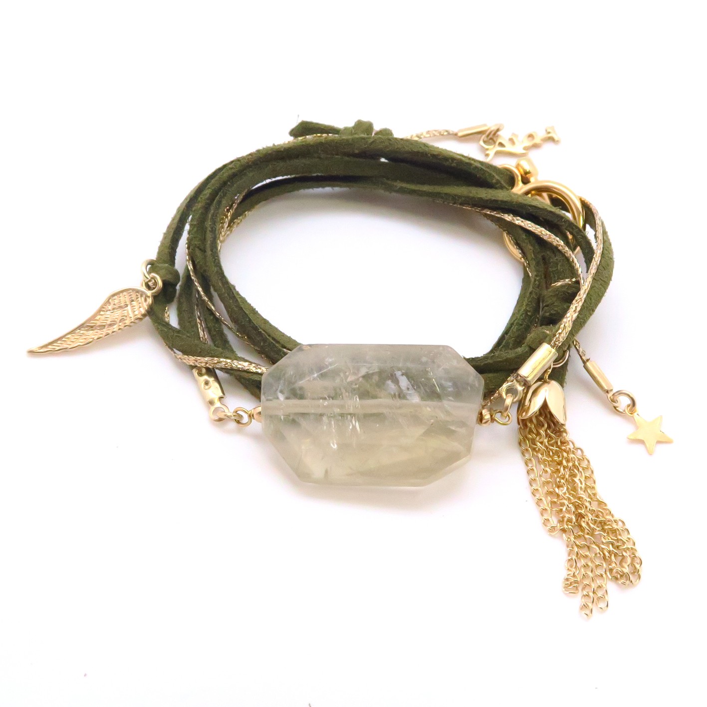 Bracelet en lurex et nubuck avec pierre semi-précieuse.
