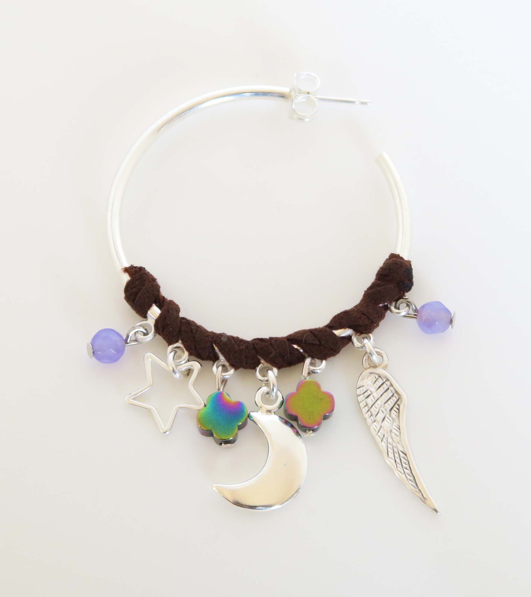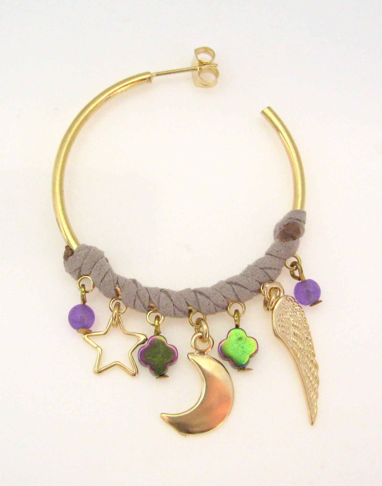Créoles entourées de nubuck avec pampilles et pierres semi-précieuses.