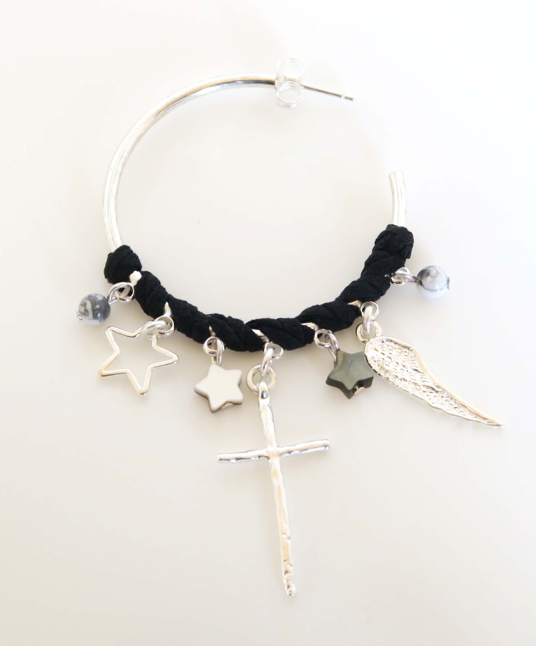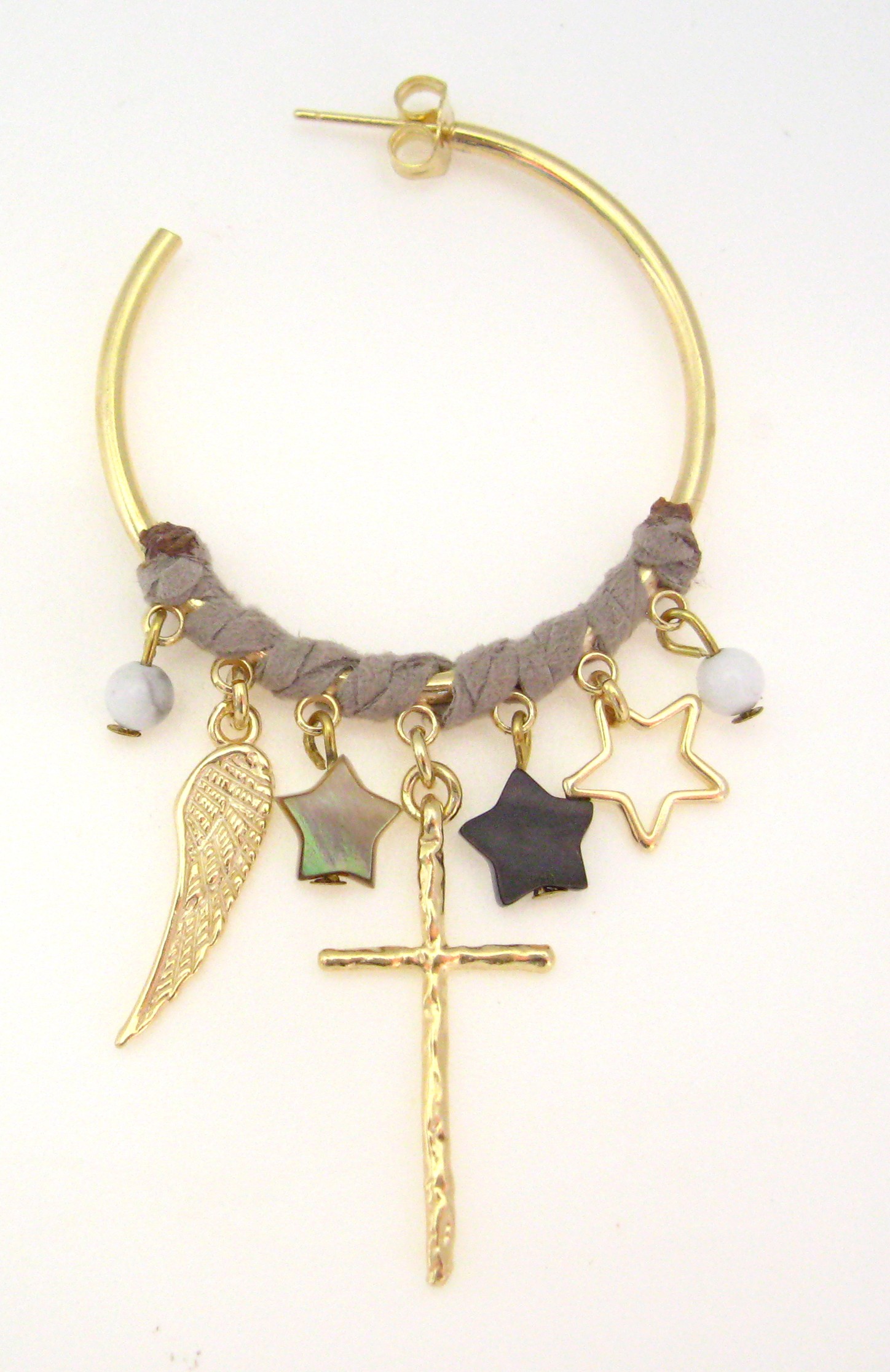 Créoles entourées de nubuck avec pampilles et pierres semi-précieuses.