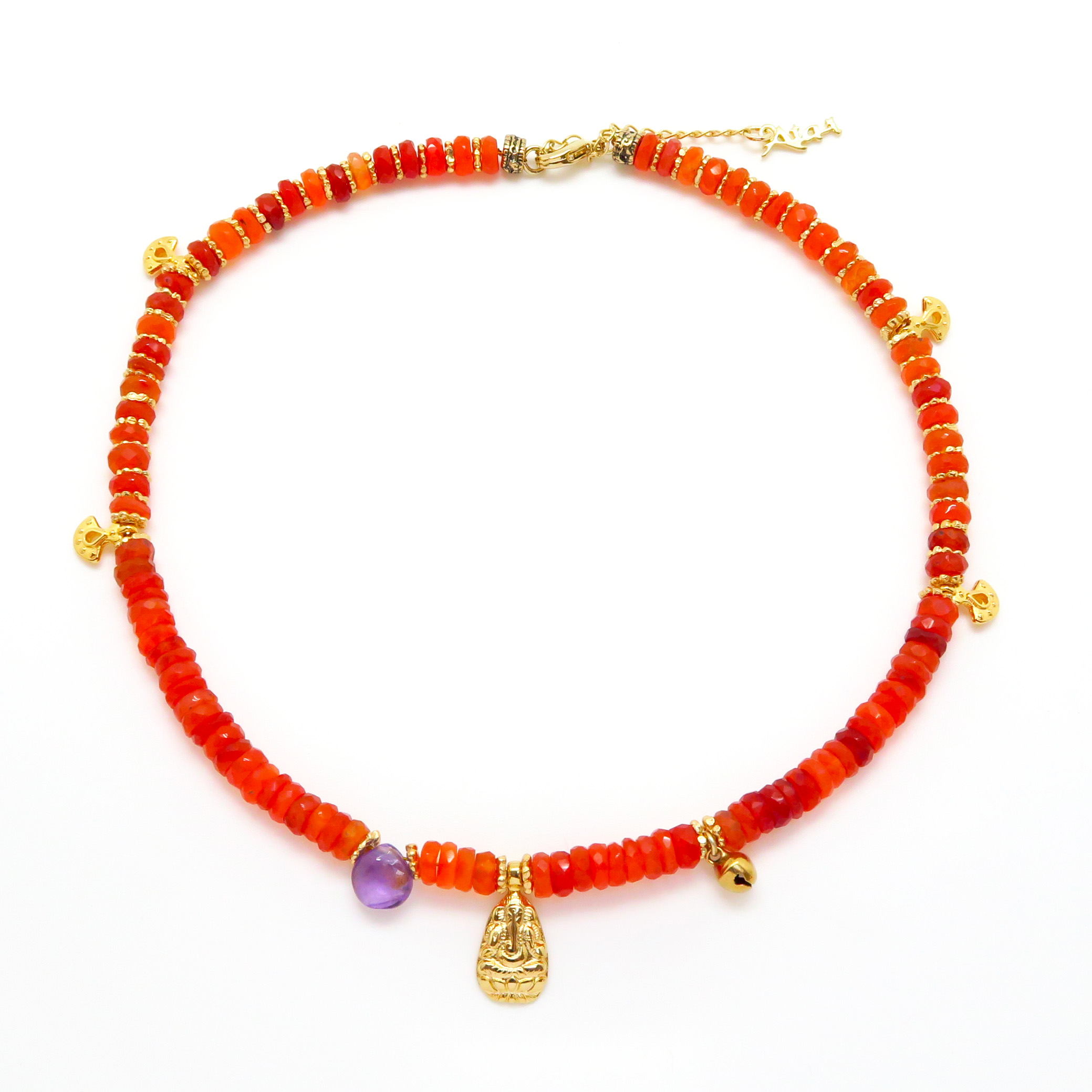 Coloris: pierres semi-précieuses en cornaline et goutte en améthyste.