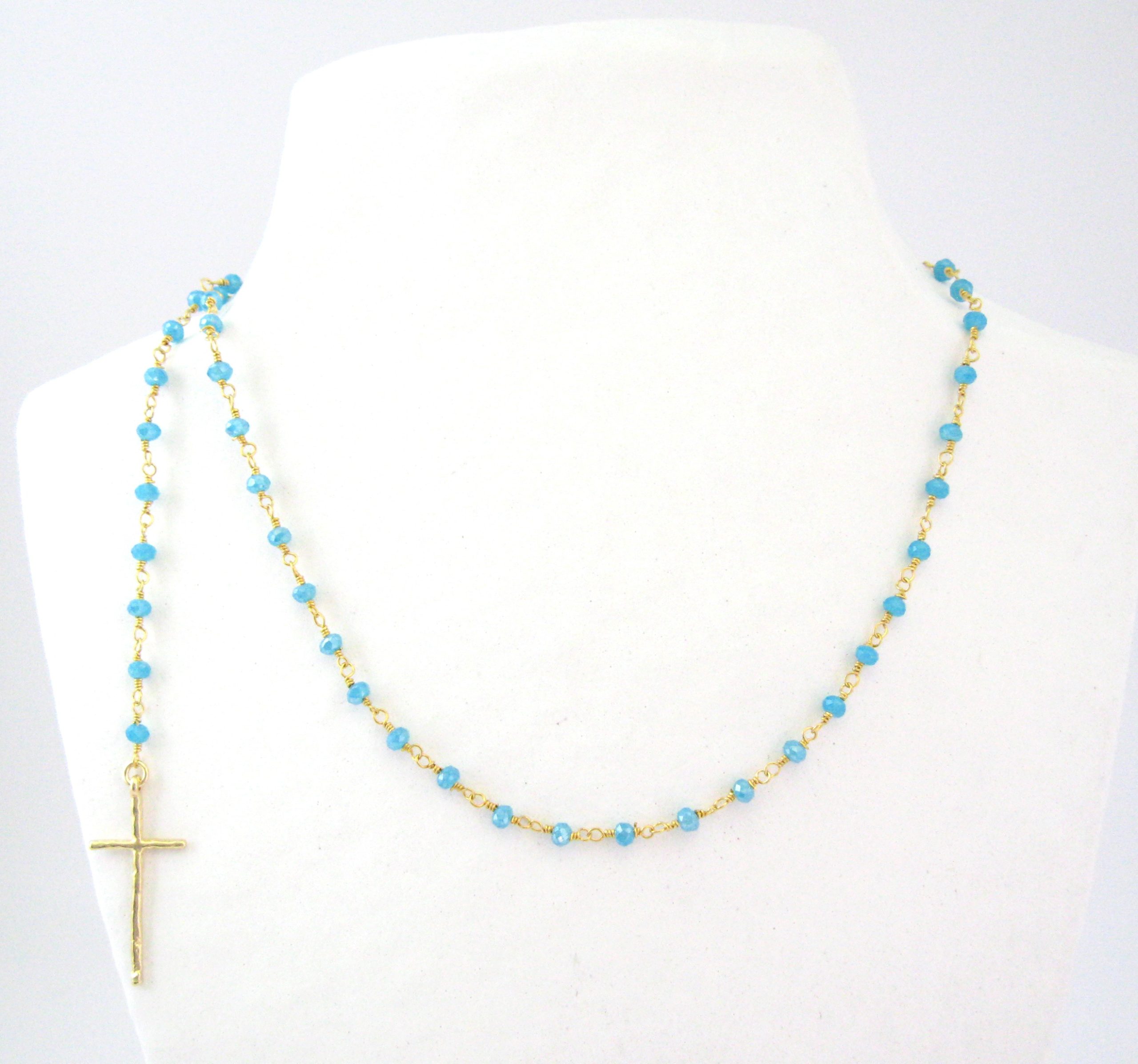 Ras de cou avec perles en cristal façon chapelet. Possibilité de porter la chaine sur le côté dans le dos.