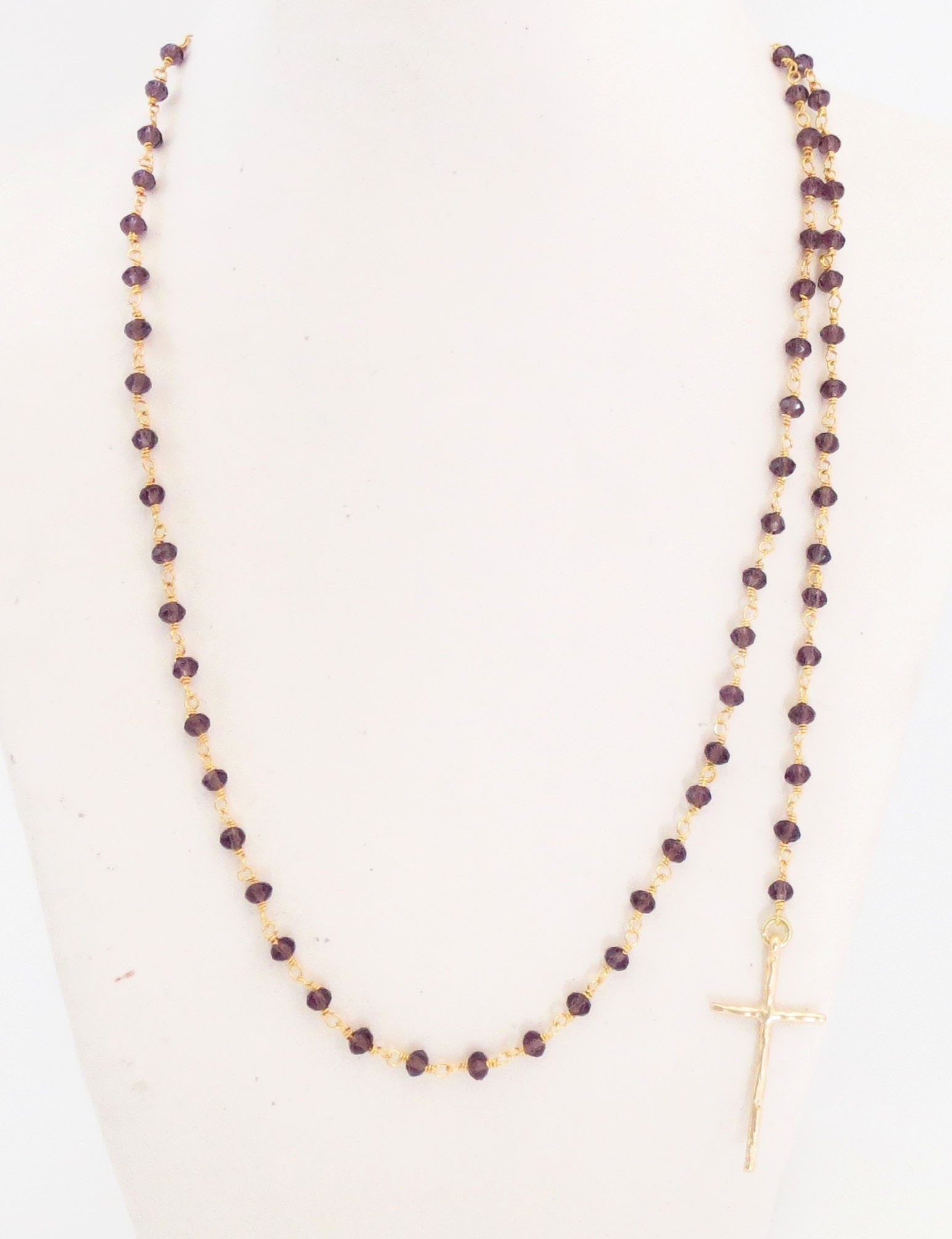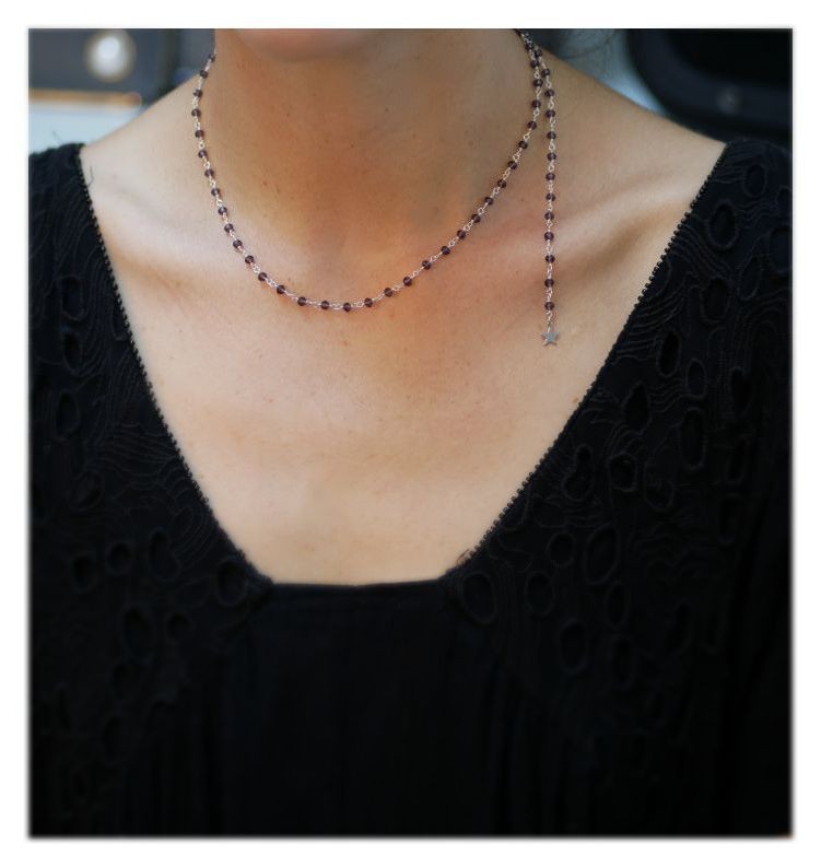 Ras de cou avec perles en cristal façon chapelet. Possibilité de porter la chaine sur le côté dans le dos.