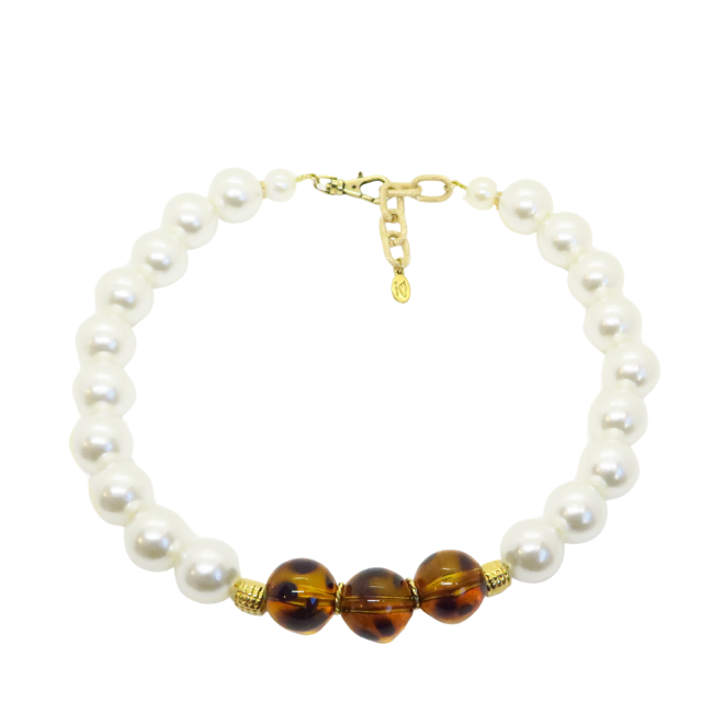 Ras de cou en perles de culture fantaisie et perles léopard en résine.