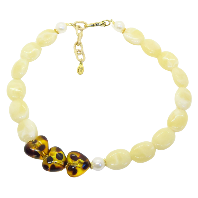 Ras de cou Gabrielle perles ivoire et cœurs léopard