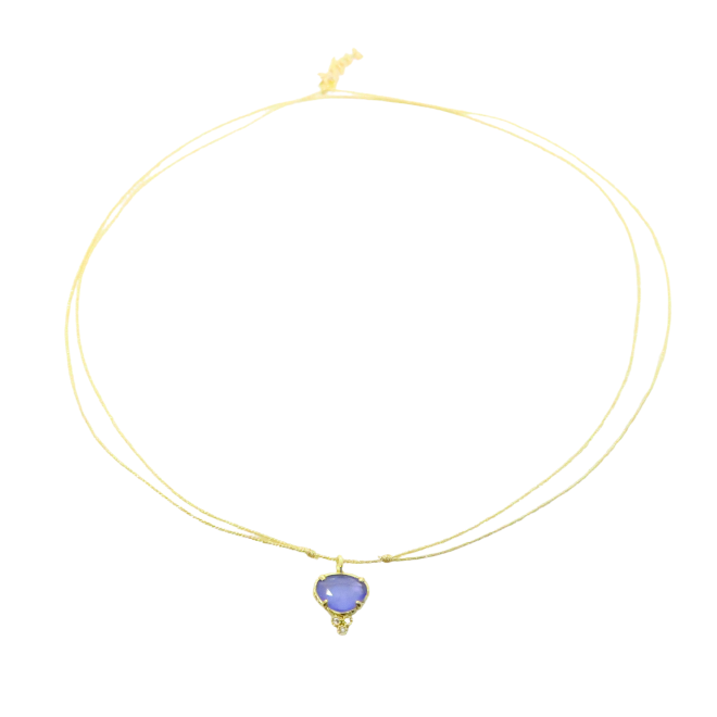 Ras de cou ajustable en lurex doré avec pierre de synthèse colorée.
