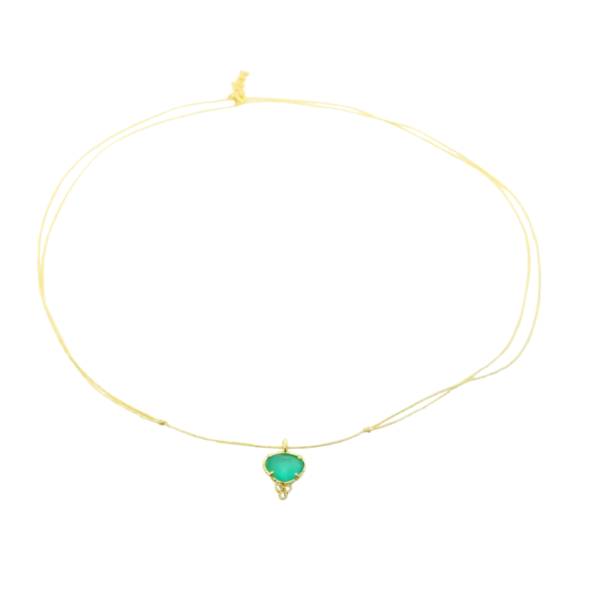 Ras de cou ajustable en lurex doré avec pierre de synthèse colorée.