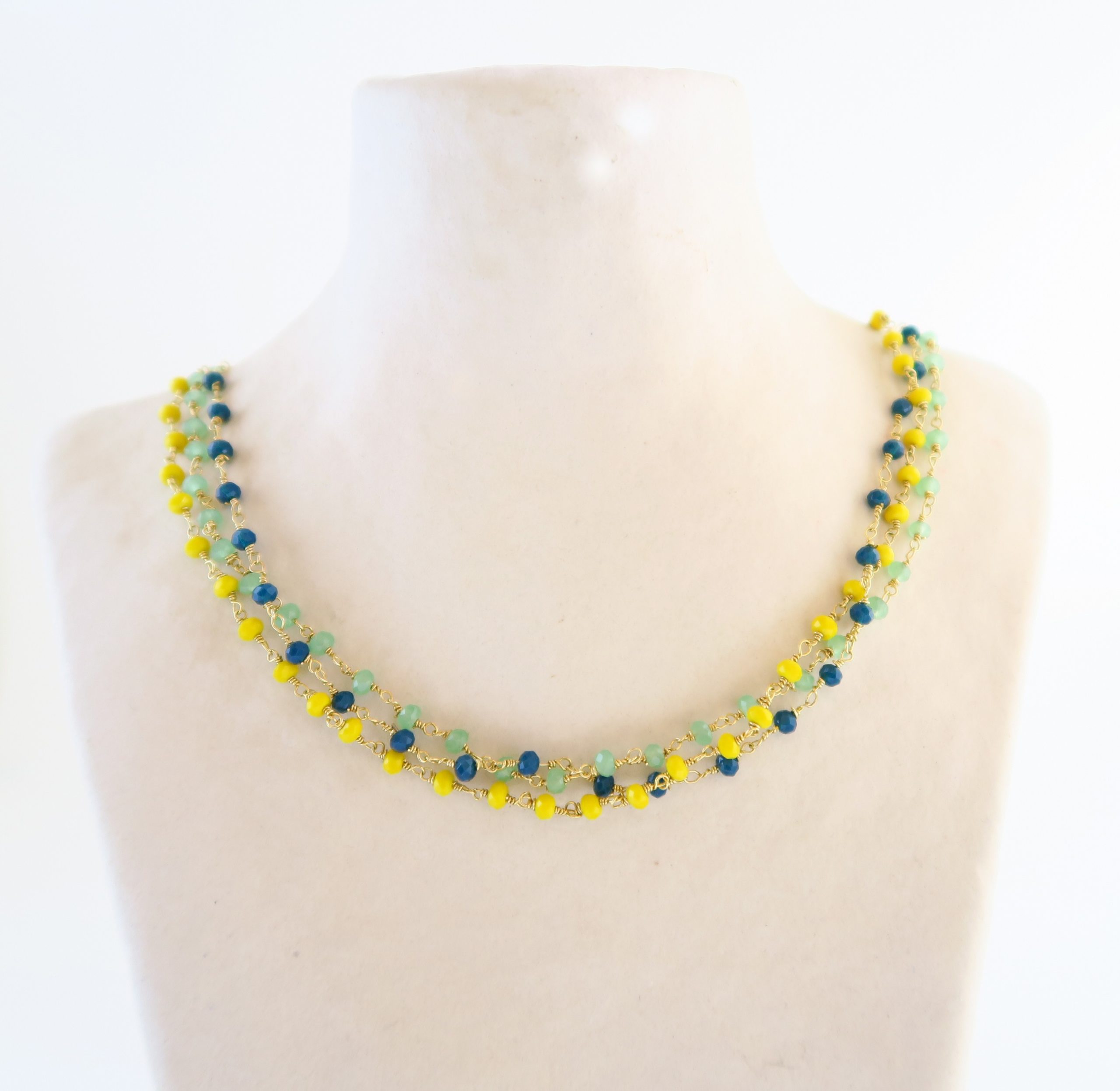 Ras de cou triple avec chainettes en perles de cristal et petite étoile.