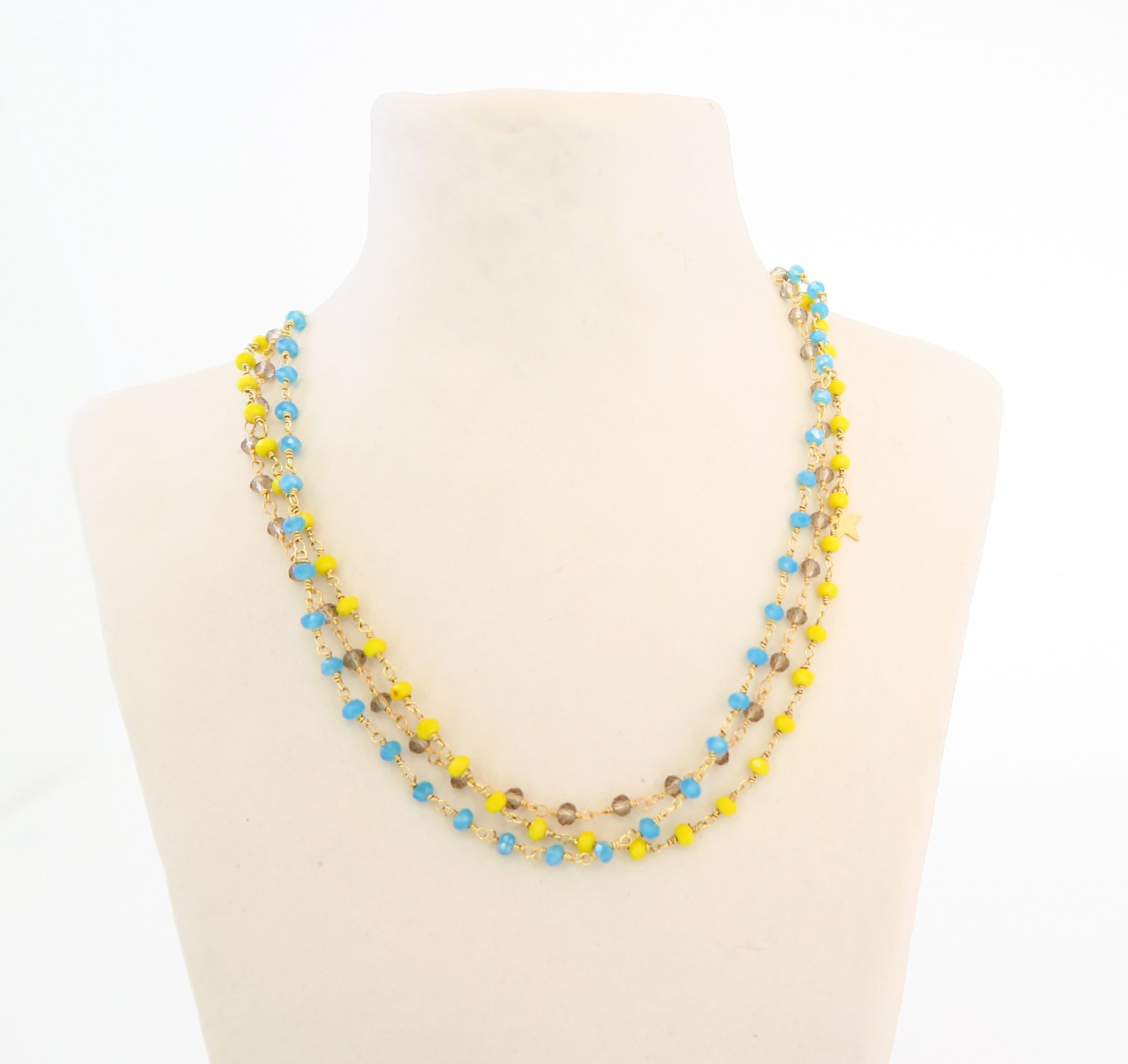 Ras de cou triple avec chainettes en perles de cristal et petite étoile.