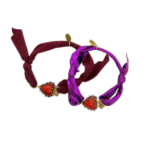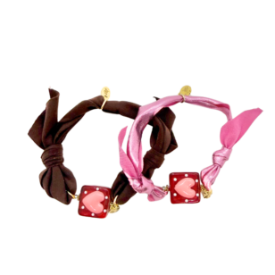 Bracelet Candy Bar avec cur en verre bordeaux et rose