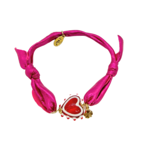 Bracelet Candy Bar avec cur en verre rouge et rose