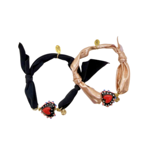 Bracelet Candy Bar avec cur en verre noir et rouge