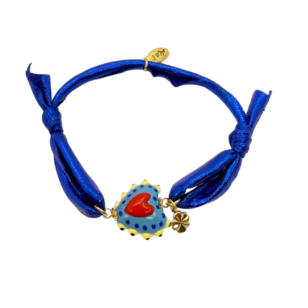Bracelet Candy Bar avec cur en verre bleu et rose